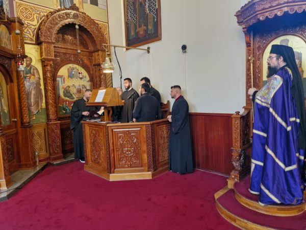 His Grace Bishop Evmenios of Chora, delivered a greeting on behalf of His Eminence Archbishop Makarios of Australia, emphasising first of all the sacred responsibility of the chanters to lead prayer and calling on them to approach their role with humility, devotion and respect. He pointed out the need to honour even the simplest hymns, such as “Lord have mercy” and “Amen”, with the same reverence as the more elaborate ones, highlighting the importance of each word in prayer.