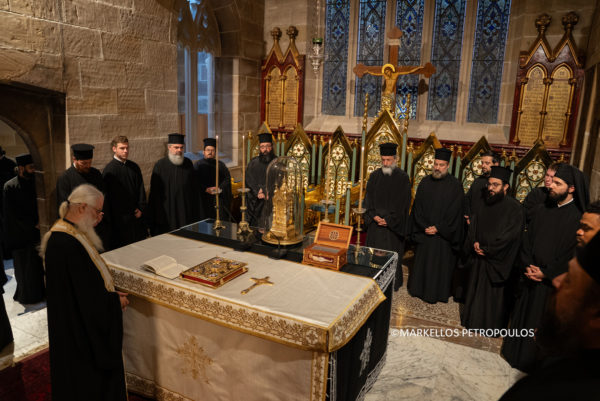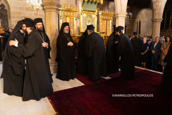 During the Service, the Encyclical of Archbishop Makarios for the beginning of Holy and Great Lent was read by Their Graces the Bishops, in Greek and English. “The call of our Church for Great Lent,” it emphasised, among other things, “is repentance, which refers to a continual journey, a steady reorientation of our existence towards Christ.”