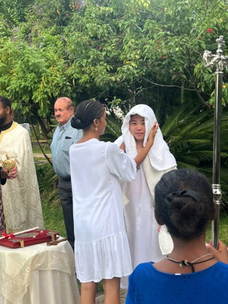 With the Sacrament of Baptism, which was performed by His Eminence Metropolitan John of Zambia, the neophyte entered the Orthodox Church taking the name Maria – the name of the Virgin Mary – following her own wish.
