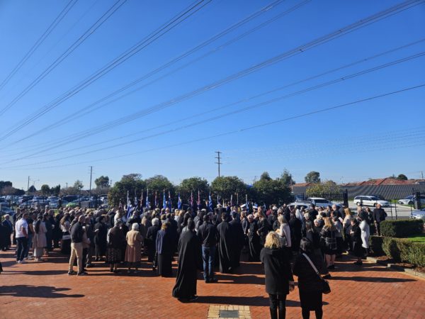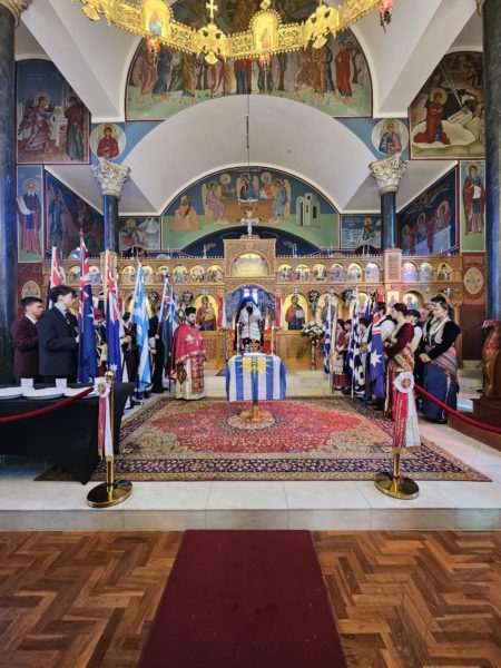 Finally, the chanter of the Parish of the Transfiguration of Our Lord, Mr. Anastasios Filippou, recited the Ode for the Fallen, while students of the Greek Orthodox Colleges “Saint John College” and “Oakleigh Grammar” of the Holy Archdiocese of Australia, as well as from the Greek School of the Holy Archdiocese “Aetolian College”, sang the National Anthems of Greece and Australia.