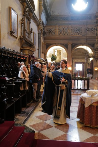 Following the Divine Liturgy at the Cathedral of Saint George of the Greeks, the sacred Service of the Blessing of the Waters was celebrated, with the casting of the Holy Cross into the canal from the Bridge of the Greeks (Ponte dei Greci), for the sanctification of the waters of the city of Venice.