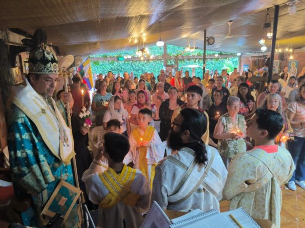 His Grace Bishop Timothy of Assos, Supervisor of the Archdiocese of Colombia and Venezuela, chanted “Christ is Risen!” at the Church of the Archangel Michael in Copacabana, Colombia. At the same time, His Grace Bishop Hesychios of Marcian, Supervisor of the Archdiocese of Mexico and Panama, presided over the Divine Liturgy in the Holy Church of the Presentation of the Blessed Virgin Mary, the Diocesan Student Boarding School, in the city of Pereira, Colombia.