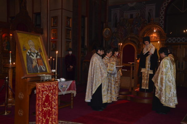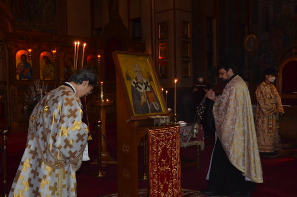 The next day, Sunday December 6, due to government restrictions, only a small number of believers were able to come to church to participate in the service of Orthros and the Divine Liturgy. In his sermon, HE Metropolitan Ambrosios stated that “St. Nicholas is very popular because he is the protector of children, the poor, the wronged, the sick and sailors when they are in danger of turbulence. However, it is not only the sea that has storms. Our life has storms, too. The holy hymn writer calls Saint Nicholas “a serene harbor, in which those who seek refuge in it, afflicted by the storms of their lives, are saved.” Many storms afflict us, too: financial, family, social incurable diseases, pandemics, etc. Let us resort with faith to his protection. “We turn to you, Saint Nicholas, even now that the terrible pandemic of COVID-19 is tormenting us. We beg you to protect us from this terrible danger. Protect the elderly and those in vulnerable groups in particular. Heal, please, those who are sick with the coronavirus and intercede to the Lord to show His infinite mercy to the hard-hit human race. Amen”.