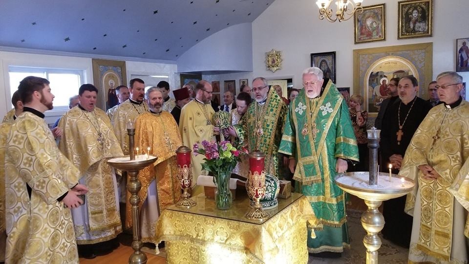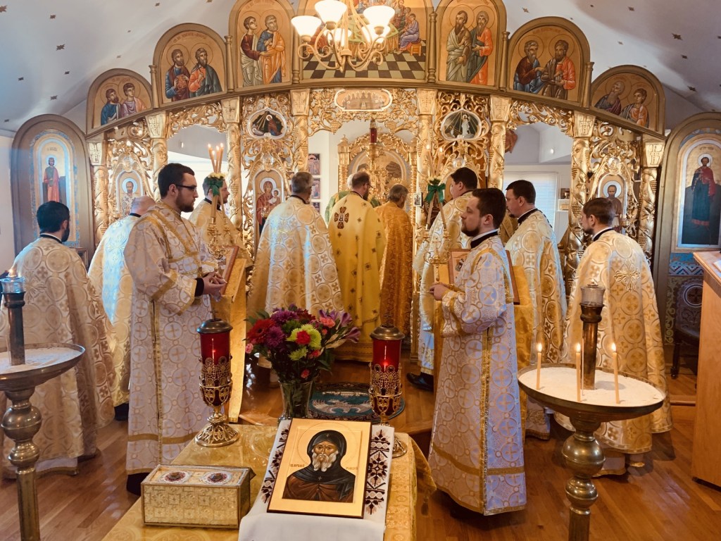 Concelebrating with the bishops were Very Rev. Fr. Anthony Perkins (pastor of the Protection of the Birth-Giver of God Ukrainian Orthodox Cathedral, Allentown, PA), Very Rev. Fr. Yuriy Siwko (pastor of St. Andrew the First-Called Ukrainian Orthodox Memorial Church, South Bound Brook, NJ), Very Rev. Petro Levko (pastor of St. George Ukrainian Orthodox parish in Yardville, NJ), Very Rev. Mykola Andrushkiv (pastor of St. Luke the Evangelist Ukrainian Orthodox parish in Warners/Syracuse, NY), Very Rev. Vitaliy Pavlykivsky (pastor of All Saints Ukrainian Orthodox parish in New York City, NY), Rev. Fr. Orest Pukhalsky (pastor of Sts Peter and Paul Ukrainian Orthodox parish in Glen Spey, NY), Rev. Fr. Vasyl Pasakas (pastor of the Nativity of the Birth-Giver of God Ukrainian Orthodox parish in South Plainfield, NJ), Rev. Fr. Vasyl Shak (pastor of St. Panteleimon the Healer Ukrainian Orthodox Church in Brooklyn, NY), Protodeacon Ihor Rusyn (Protection of the Birth-Giver of God Ukrainian Orhtodox parish in New Haven, CT), Deacon Sviatoslav Hot and Deacon Oleg Kravchenko (St. Sophia Seminary, South Bound Brook, NJ) as well as Very Rev. Fr. Taras Naumenko (pastor of St. Vladimir Ukrainian Orthodox Cathedral in Philadelphia, PA), Very Rev. Fr. Volodymyr Muzychka (pastor of St. Volodymyr Ukrainian Orthodox Cathedral in New York City, NY), Very Rev. Fr. Todor Mazur (pastor of the Holy Trinity Ukrainian Orthodox Cathedral in New York City, NY), Very Rev. Fr. Volodymyk Khanas and Very Rev. Fr. Vasyl Scherban.