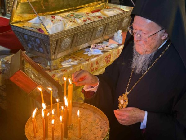 At the end of the Divine Liturgy, His All-Holiness distributed the antidoron to the faithful gathered from the Constantinople and abroad and then venerated the holy relics of Saint Euphemia.