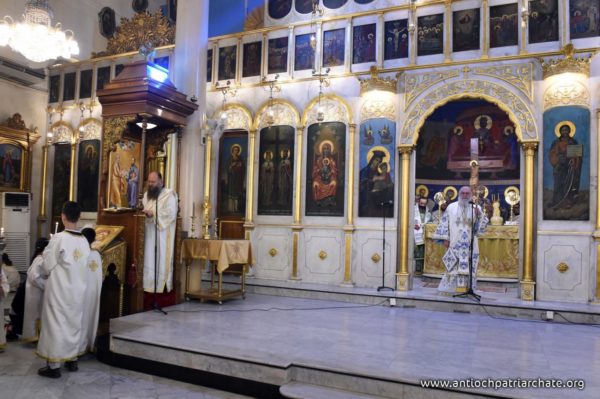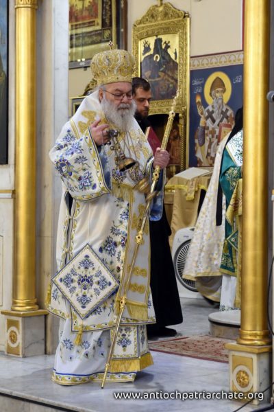 Concelebrating alongside the Patriarch were Bishops Romanos (Al Hannat), Youhanna (Batash), Arsanios (Dahdal), and Mousa (Al Khasi), as well as Archimandrite Philip Vasiltsev, representative of the Russian Patriarchate to the Patriarchate of Antioch, along with many priests and deacons. At the conclusion of the Divine Liturgy, a procession with the Holy Cross was held.