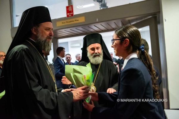 Finally, the Patriarch expressed his deep emotion at having the opportunity to visit St Euphemia in Sydney for the second time, after 28 years, as well as to reunite with his compatriots living in this distant land. He concluded his address with an exhortation and invitation: “Keep coming back to the Phanar whenever you have the chance, and return to our Imbros because your presence there will show in practice that you do not forget it. Come and encourage your children to come, so they can connect with their place of origin.” He then handed the floor to His Eminence Metropolitan Kyrillos of Imbros and Tenedos and Mr Konstantinos Delikostantis, an Archon Teacher of the Nation and Director of the First Patriarchal Office, who hails from the island. He also introduced to the attendees Mr Themistoklis Karanikolas, a native of Imbros and an employee of the Patriarchate.