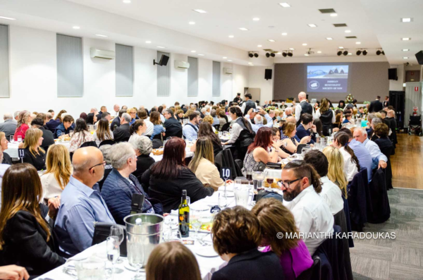 Afterward, His All-Holiness Bartholomew proceeded to the community hall, where he was welcomed by Mr Marinos Paronis, President of the Imbrian Association of Sydney and New South Wales, and a large crowd of expatriate Imbrians. The event, coordinated by Father Panagiotis Mavrommatis, began with a presentation of Greek traditional dances in honour of the Patriarch. In continuation, greetings were delivered by Mr.Chris Spyropoulos, President of the Parish-Community of Saint Euphemia, Mr Nicholas Madouris on behalf of the Imbrian Association, and Mrs Eleni Chrysostomidou, President of the Association of Greeks from Constantinople and Asia Minor of NSW. Notably, Mr Spyropoulos and Mr Madouris announced donations of $10,000 and $5,000, respectively, to support the operation of the Greek schools in Imbros.