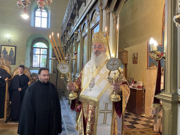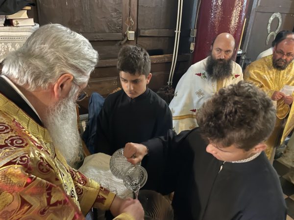 As every year, and this year as well, His Eminence Metropolitan Anthimos of Alexandroupoli made his way to Samothrace for the feast of the five New Martyrs, which is celebrated in the Holy Church of the Dormition of the Theotokos, where the sacred skulls of the Saints are also kept. On the eve of the Feast, the Great Hierarchical Vespers were held, presided over by the local Metropolitan. Before the end of Vespers, he tonsured Konstantinos Melenios, a student of the first high school, as a reader, urging him to constantly be at the chanter’s stand and to constantly enrich his knowledge of Byzantine music.
