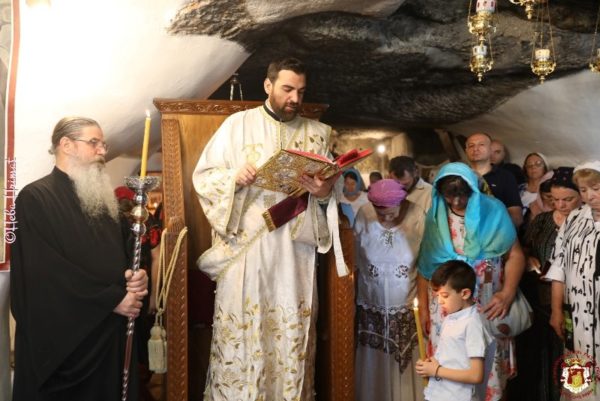 The Divine Liturgy was followed by a procession to the tomb of Saint Iouvenalios, the first Patriarch of Jerusalem, the tomb of the renovator of the Monastery Hieromonk Cyril, and then a Trisagion was read for the repose of the souls of the Founders of the Monastery and of Nun Seraphima. The precession concluded with the prayer for the fruit.