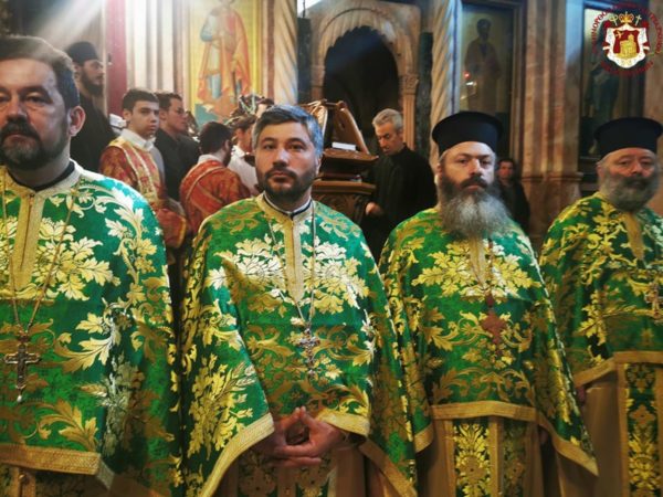 On this feast, the Hagiotaphite Brotherhood held Great Vespers in the evening at the Catholicon f the Church of the Resurrection after the reception and veneration at the Holy Deposition and the Holy Sepulchre, presided over by His Beatitude, our Father and Patriarch of Jerusalem Theophilos.