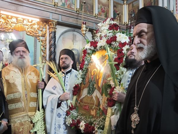 On this feast, the whole Church of Jerusalem commemorates the triumphal entry of the Lord after the resurrection of Lazarus, seated on a colt, when the children of the Jews, spreading their garments, received Him holding palm tree branches, crying “Hosanna to the Son of David”.