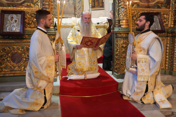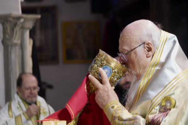 After the Divine Liturgy, His All-Holiness presided over the Vespers of the Holy Spirit, during which the Their Eminences, Metropolitans of Philadelphia, Philippoupolis and Archbishop of Anthidon read the Kneeling prayers.