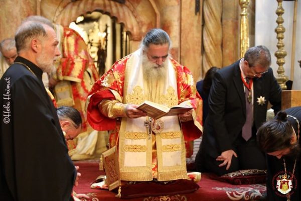 This wondrous event was celebrated on Sunday morning with the Divine Liturgy at the Holy Sepulchre, which was led by His Beatitude our Father and Patriarch of Jerusalem Theophilos with the co-celebration of their Eminences, Metropolitan Isychios of Kapitolias, the Archbishops, Theophanes of Gerassa, Aristarchos of Constantina, Theodosios of Sebastia, Nectarios of Anthedona, Philoumenos of Pella, the Elder Kamarasis Archimandrite Nectarios, Archimandrite Klaudios, Arab-speaking Priests and Priests from Russia, Romania and Georgia. Many faithful Christians attended the Service, as well as the Consul General of Greece in Jerusalem Mr Evangelos Vlioras.
