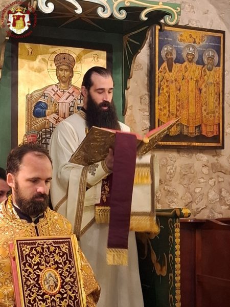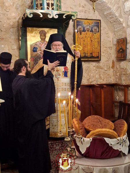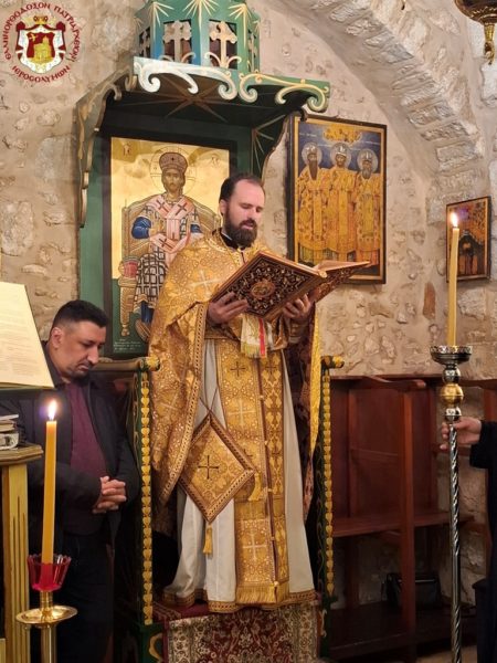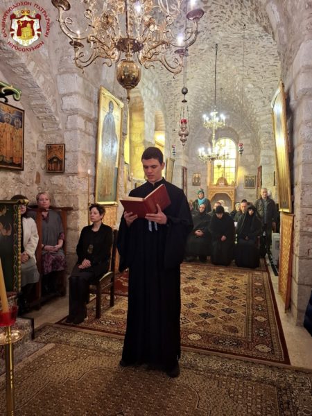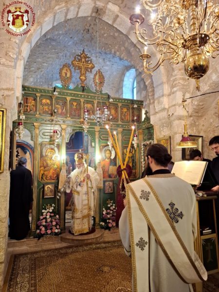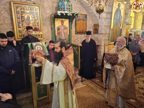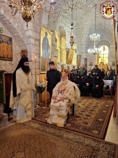 In honour of Saint Euthymios, Vespers was held at his Holy Monastery in the afternoon, followed by the Divine Liturgy in the morning, led by His Eminence Metropolitan Kyriakos of Nazareth, with the participation of the Typikon overseer of the Church of Saints Constantine and Helen, Archimandrite Alexios, Archimandrite Christodoulos, Priest Georgios Baramki, and the Deacons Eulogios and Dositheos, with the chanting of the Chief Cantor, Deacon Efstathios, along with the participation of monks, nuns from the Old City of Jerusalem, and Christians.