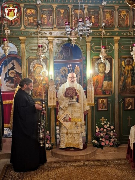 During the Divine Liturgy, His Beatitude, our Father and Patriarch of Jerusalem, Theophilos, came to venerate, accompanied by the Fathers of the Hagiotaphite Brotherhood.