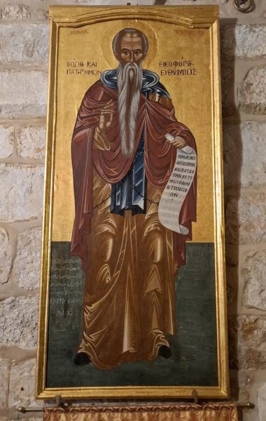On this feast day, the Church commemorates that Saint Euthymios arrived in the Holy Land from Melitene in Armenia in 420. He founded a Monastery, a Lavra, where he received and guided thousands of monks into the monastic life in Christ, and thousands of Christians into the Christian life. He had Saint Theoctistos as a co-worker, who founded a Monastery of the Coenobitic type. Saint Euthymios was the teacher of Saint Sabas the Sanctified and converted the Empress Eudoxia from Monophysitism to Orthodoxy. He also received nomads from Persia at his Monastery and suggested to Patriarch Iuvenalios the ordination of their leader, Asphebetus-Peter, as their Bishop, as Metropolitan of “the Camp”. Due to his holiness, he was granted by God the gift of prophecy and healing.
