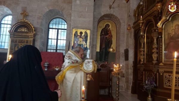 The feast was also celebrated in the Holy Monastery of Saint George of the Hospital with Vespers in the evening and the Divine Liturgy in the morning, presided over by the Dragoman Archimandrite Mattheos, under the chanting of Hierodeacon Simeon and His Eminence Archbishop Dimitrios of Lydda helped at Vespers. The celebrations were hosted by the Abbess of the Monastery, Nun Pansemni.