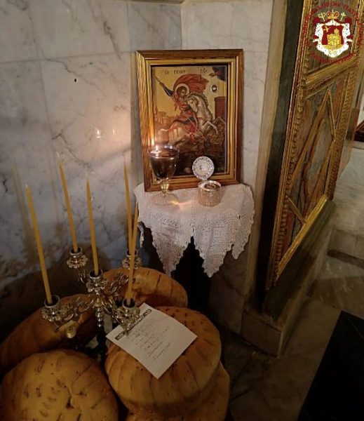 We say this, because, during our Church services and especially during the service of the Holy Eucharist, we have with us, in our midst, present the living Christ, the Sun of Righteousness, the God of love and peace. Moreover, we have the living testimony of the translation of the holy great martyr George’s relics, in his tomb that lies here. “Having been disciplined a little, Saint George received great good, because God tested him and found him worthy of himself; [6] like gold in the furnace he tried him, and like a sacrificial burnt offering he accepted him” (c.f. Wisdom of Solomon 3,5-6).