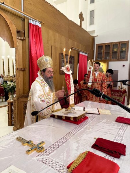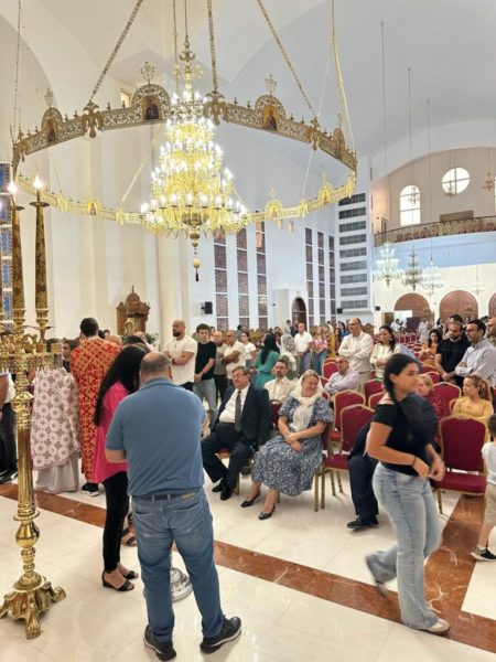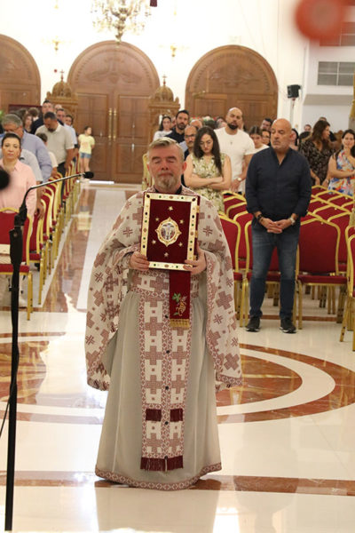 On Friday, October 11, 2024, the Matins and the Divine Liturgy were presided over by the Most Reverend Archbishop Makarios of Qatar, with con-celebrant the cross-bearer Priest Michael Theocharidis, with the participation of the numerous pious flock, the Ambassador of Greece Mr Ioannis Ioannidis, the Ambassador of Russia, Mr Dmitry Dogadkin, the new Ambassador of Cyprus, Mr Andreas Nikolaidis, the Acting Ambassador of Georgia, Mr Teimuraz Kereselidze, and the Acting Ambassador of Serbia, Mr Alexander Petrovich Petrovic. After the solemn Divine Liturgy, the Holy Icon of Saint Isaac of Syria procession took place and a treat followed in the new reception hall.