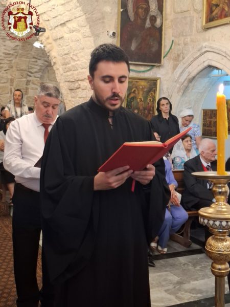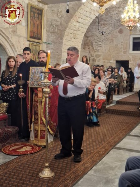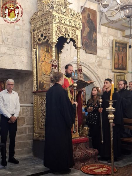 The chanting on the right in Greek was rendered by the chief cantor of the Church of the Holy Sepulchre, Deacon Eustathios, with the students of the Patriarchal School of Zion, and on the left in Arabic by the choir of the Cathedral under Mr Rimon Kamar. Present also was the Consul of the Greek General Consulate, Mrs Anna Mantika, together with members of the parish, nuns, and many others.