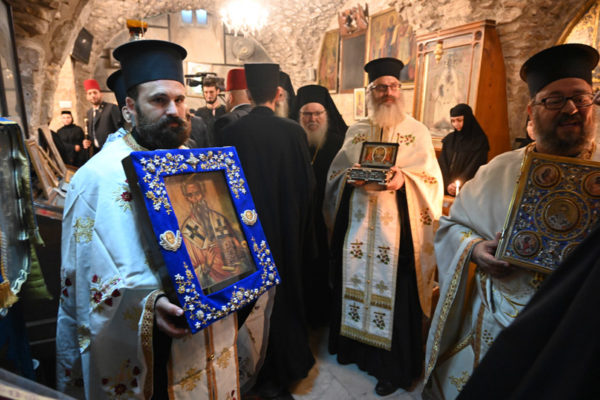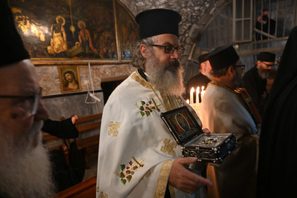 In honour of his memory and his work, solemn Vespers was held in the Holy Cathedral in his name, located between the Holy Sepulchre Brotherhood and the Church of the Holy Sepulchre, presided over by our Father and the Patriarch of Jerusalem Theophilos, the Holy Sepulchre Hieromonks co-ministering with Him, with first in rank first the Elder Kamarasis Archimandrite Nektarios and the priests of the Church.