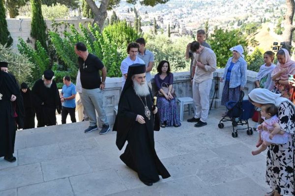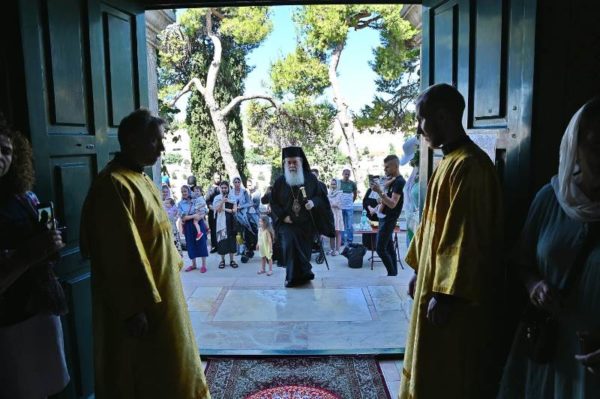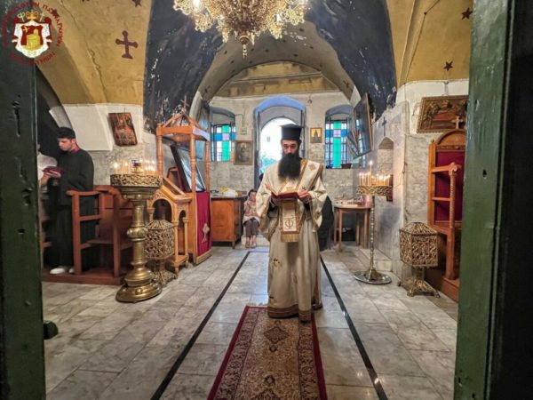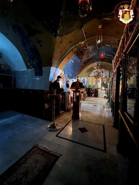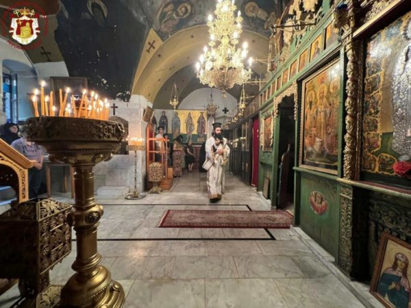 The memory of Saint Mary Magdalene was celebrated in a Vigil at the Church of the Holy Sepulchre, which was presided over by His Eminence Archbishop Aristarchos of Constantine in special honour, in a litany around the Holy Sepulchre and the shrines in procession and worship of the Saint’s sacred relic, which is preserved in the Sacristy of the Church of the Resurrection.