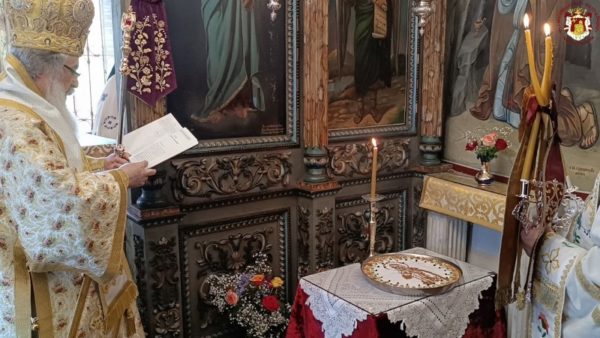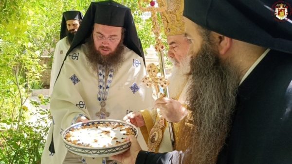 Subsequently, a Trisayon ​​took place for the repose of the soul of the departed nun of the Monastery Serafima Euthymiadou. Then at the Tomb of the Monastery’s Founder Hieromonk Kyrillos, the blessing of the beginning of the fruits was read.