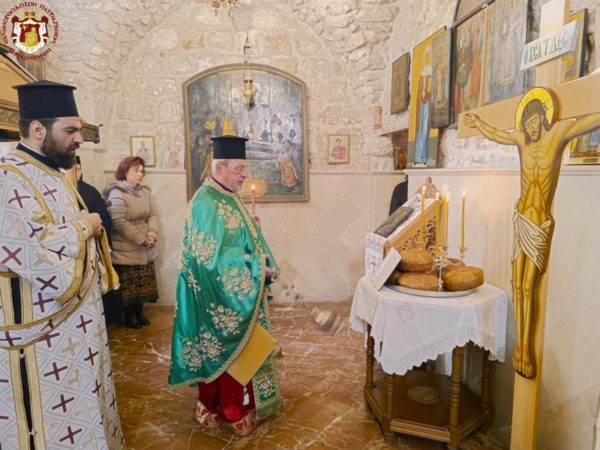 Also, on the same day, the feast of Saint Sabas the Sanctified was celebrated with Vespers and the Blessing of Bread at the chapel of the Holy Monastery Archangels, with the Divine Liturgy led by Archimandrite Claudius, with the help of Hierodeacon Eulogios. The chanting was delivered by the nuns of the Patriarchate, with the prayerful participation of monks and faithful from Jerusalem, as well as those residing in the Holy Monastery of the Archangels, under the hospitality of His Eminence, Archbishop Demetrios of Lydia, the monastery’s Hegoumen.