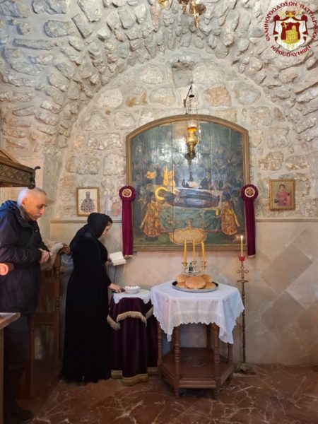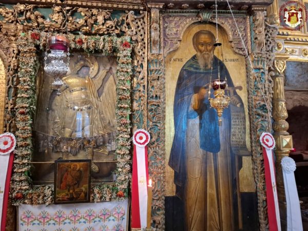 The feast of Saint Sabbas the Sanctified was likewise celebrated at the festal Holy Chapel dedicated to him at the Holy Monastery of the Holy Archangels in the Old City of Jerusalem, with Vespers and the Blessing of the Loaves in the evening, and the Divine Liturgy in the morning, celebrated by His Eminence Archbishop Aristovoulos of Qatar, with the participation of the monastic sisterhood and many faithful from Jerusalem. Following the Divine Liturgy, the faithful were offered hospitality by the Hegumen of the Monastery, His Eminence Archbishop Demetrios of Lydda.