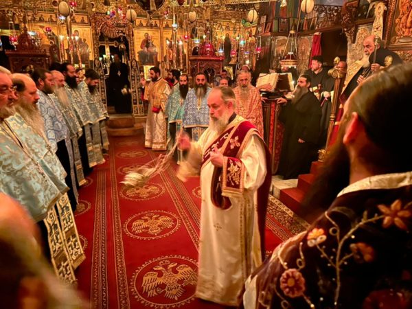 As He departed and bestowed his blessing upon the Fathers of the Lavra, His Beatitude passed, according to custom, also through the Holy Monastery of Abba Theodosius the Cenobiarch.