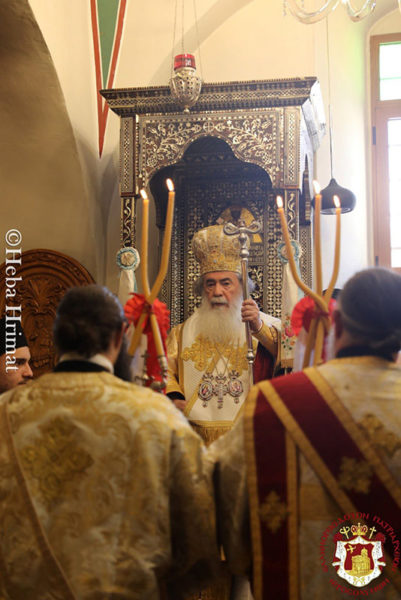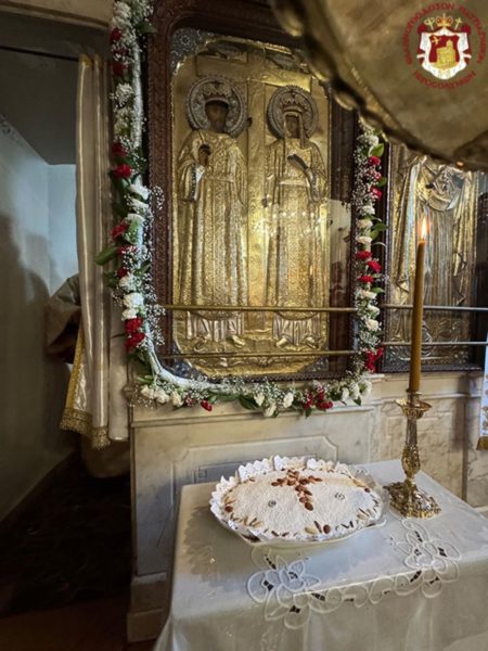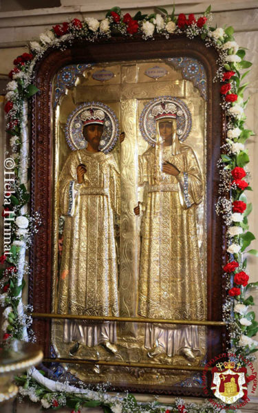 In honour of these two holy sovereigns and equal-to-the-apostles, Constantine and Helen, founders and protectors of the Rum Orthodox era in the Holy Land, which is held today in the presence of the Patriarchate of Jerusalem, Great Vespers was held on Sunday afternoon and the Divine Liturgy on Monday morning at the Central Monastery presided over by His Beatitude Our Father and Patriarch of Jerusalem Theophilos. Co-celebrants to His Beatitude were the Typicon Keeper Archimandrite Alexios and the Archimandrites Nicodemus, Stephen, Amphilochios, Makarios, Epiphanios and Dionysios.