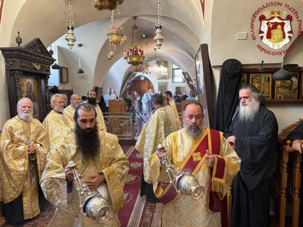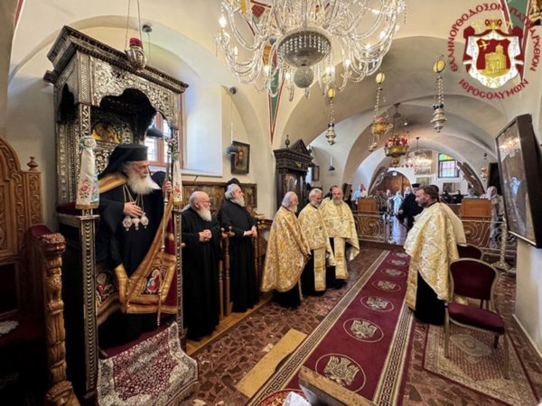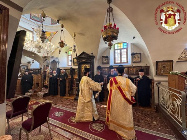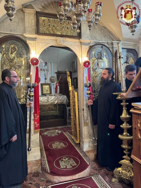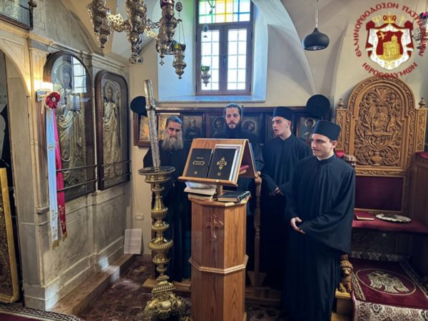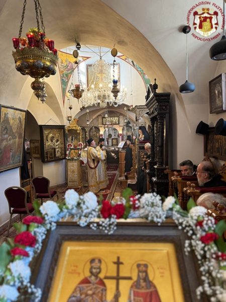 Being grateful to these glorious founders of the “Order of the Spoudaioi (Studious)”, that is, our Holy Sepulchre Brotherhood on the one hand and to the originators of the Christ-like spiritual greatness of Romiosyni on the other, we celebrated a Patriarchal Divine Liturgy in the Monastic Church of Saints Constantine and Helen and prayed to the Holy Triune God for peace in our region tested by the fire of war.