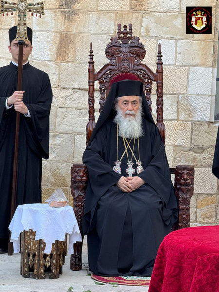 On Monday morning the Divine Liturgy was officiated by His Beatitude with the co-celebration of the Typicon Keeper Archimandrite Alexios and the Archimandrites Nicodemus, Stephen, Amphilochios, the Patriarchal representative in Acre Archimandrite Silouanos and Priest Farah. The chanting was delivered by His Eminence Archbishop Aristovoulos of Madaba and Hierodeacon Simeon with the help of the Patriarchal School of Zion students. The service was attended by the Consul Mrs Anna Mandika, local faithful and pilgrims.