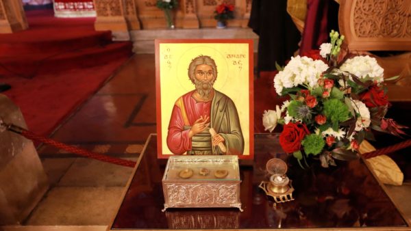 The Very Reverend Archimandrites Chrysostomos Michailides, Vasileios Emmanouil and Vissarion Kokliotis, along with Protopresbyters Constantinos Garivaldinos, Nikolaos Kokkinos and Œcomomos Kristian Akselberg concelebrated at the Hierarchical Liturgy in memory of the First Called Apostle.