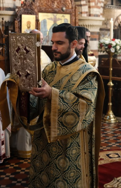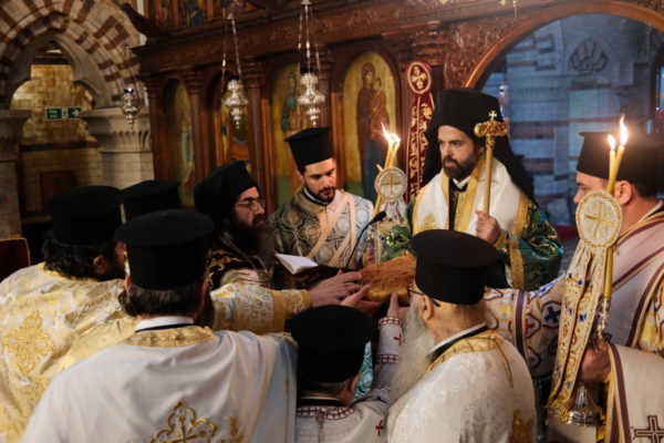 On the feast day, His Eminence celebrated the Divine Liturgy, joined by His Grace Bishop Maximos, the V. Revd Archimandrite Christodoulos Kokliotis, Priest in charge, and a number of clergy. Following the Blessing of the Loaves, performed by His Grace, His Eminence elevated another reader who will serve at the lectern of the Greek Orthodox Community in Nottingham.