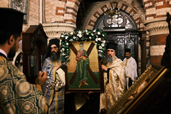 On the eve of the feast, His Eminence Archbishop Nikitas of Thyateira and Great Britain presided at Great Vespers, joined by His Grace Bishop Maximos of Melitene and clergy from the local area. During the service, the Blessing of the Loaves (Artoklasia) was offered, and His Eminence delivered a sermon on the spiritual significance of the feast and the calling of the First-Called Apostle. Before the conclusion of the service, His Eminence elevated a young man to the rank of reader.