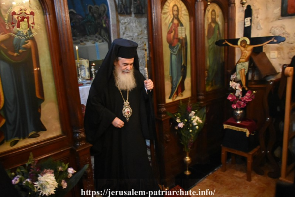 During the Liturgy, H.H.B. our Father and Patriarch of Jerusalem Theophilos came for veneration with Hagiotaphite Fathers after the cutting of the New Year Cake at the Epitropikon.