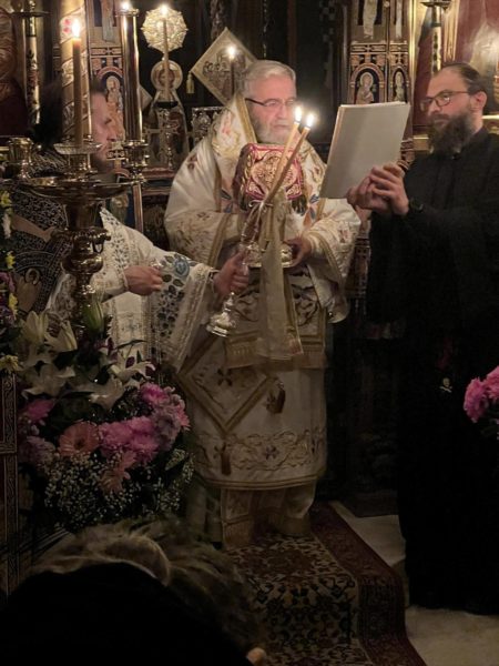 On the evening of Sunday, 7 April 2025, the Holy Vigil began, which lasted until morning. Great Vespers, Matins and the Hierarchical Divine Liturgy were celebrated, with the aforementioned Hierarch presiding. After the Divine Liturgy, a festive Monastic meal followed, at which Metropolitan Apostolos delivered the feast day homily to the fathers and the faithful.