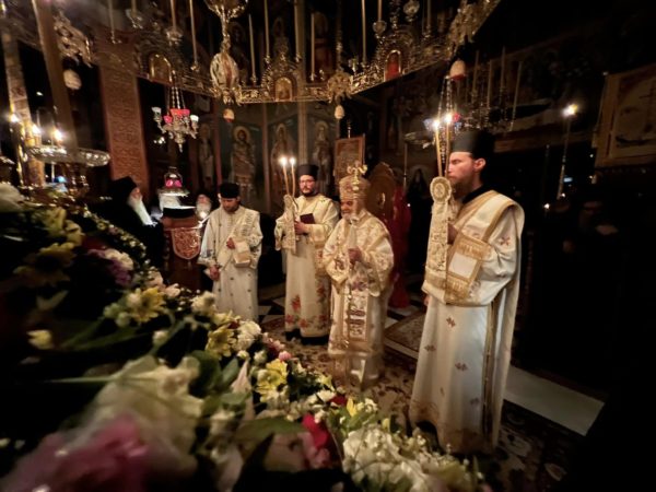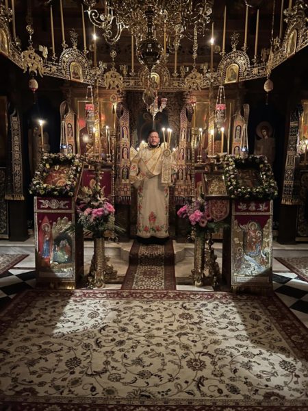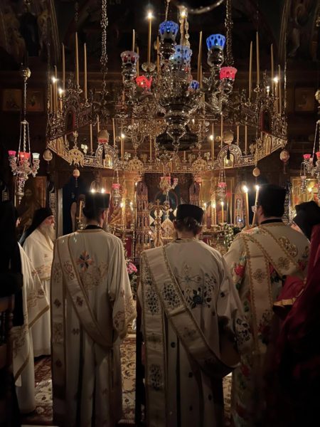 On the evening of Sunday, 7 April 2025, the Holy Vigil began, which lasted until morning. Great Vespers, Matins and the Hierarchical Divine Liturgy were celebrated, with the aforementioned Hierarch presiding. After the Divine Liturgy, a festive Monastic meal followed, at which Metropolitan Apostolos delivered the feast day homily to the fathers and the faithful.