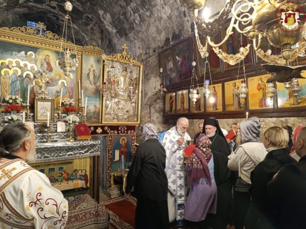 The feast and the Divine Liturgy were presided over by His Eminence Metropolitan Isychios of Kapitolias, with the co-celebration of the Holy Sepulchre Archimandrites, Philoumenos, Meletios, Dionysios, Ieronymos, Amfilochios, Priest George Baramki, Archdeacon Mark and Hierodeacon Dositheos. The chanting was delivered by Hierodeacon Simeon, Fr. Ioannis Antoniou and the students of the Patriarchal School of Sion. The service was attended by monks, nuns and local pilgrims.