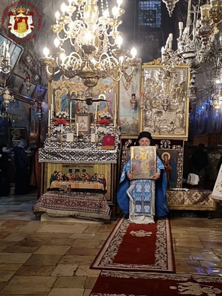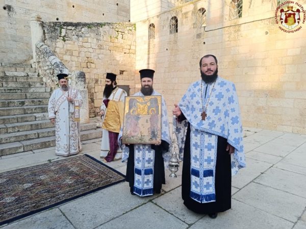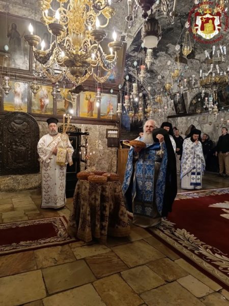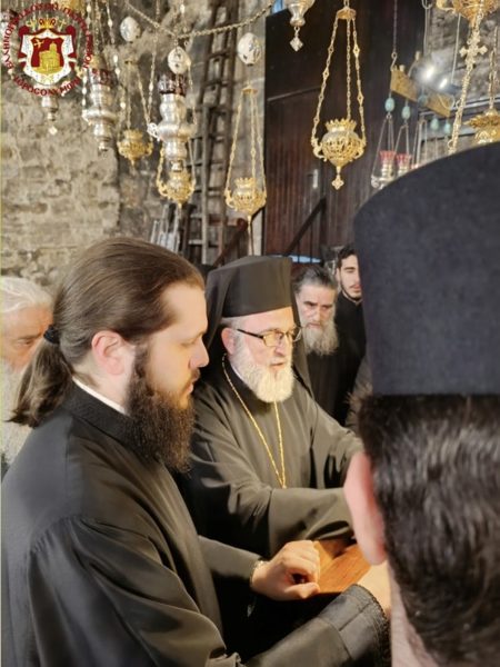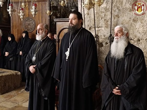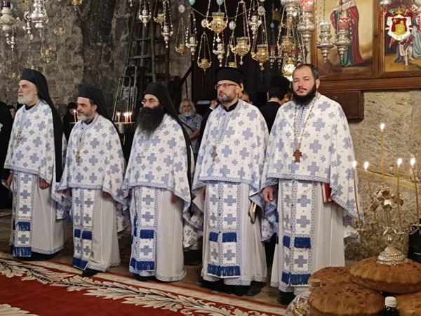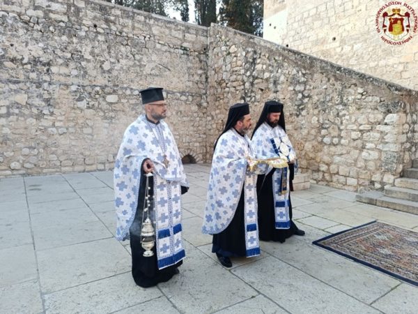 The feast and the Divine Liturgy were presided over by His Eminence Metropolitan Isychios of Kapitolias, with the co-celebration of the Holy Sepulchre Archimandrites, Philoumenos, Meletios, Dionysios, Ieronymos, Amfilochios, Priest George Baramki, Archdeacon Mark and Hierodeacon Dositheos. The chanting was delivered by Hierodeacon Simeon, Fr. Ioannis Antoniou and the students of the Patriarchal School of Sion. The service was attended by monks, nuns and local pilgrims.