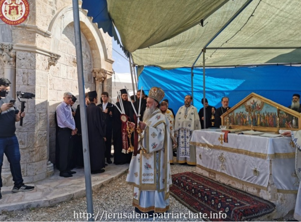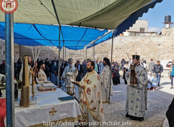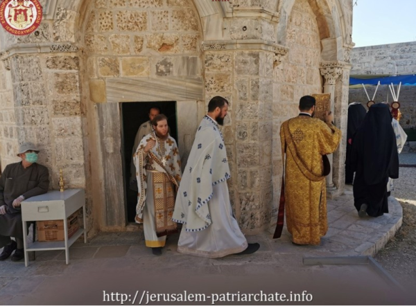 On the day of the Feast, the Divine Liturgy was officiated by His Eminence Archbishop Demetrios of Lydda, while during the Service H.H.B. our Father and Patriarch of Jerusalem Theophilos came to venerate and afterward visited the neighbouring Imam, the Nunnery opposite the Shrine of the Ascension which is led by Monk Achilios and the Monastery of Galili Viri, where He was hosted by the Hegoumen Archimandrite Anthimos.