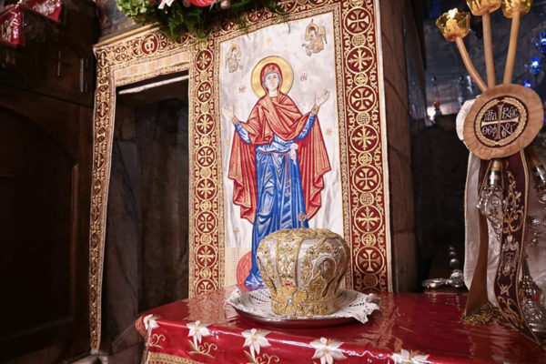 During this feast, the whole Church, especially that of Jerusalem, remembers that the Mother of God, daughter of the Holy Ancestors of God Joachim and Anna and mother of our Lord Jesus Christ, fell asleep on the ground of Zion and was buried by the “God’s Spirit” gathered Holy Apostles in Gethsemane. The Lord took her God-bearing body in His hands and made her sit down at His right hand, so that there, above the heavenly orders, first after God of the triumphant Church, she prays for those who honour her and for the whole world.