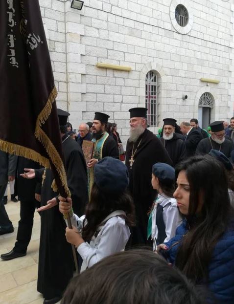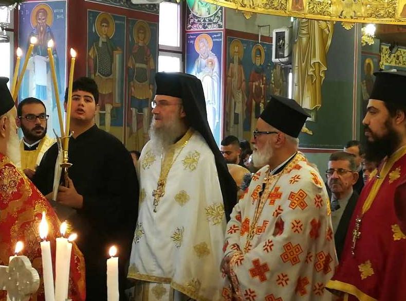 In this beautiful Church which is decorated with a stone-carved ikonostasion and Byzantine hagiography, the Divine Liturgy was celebrated in the morning, officiated by the Most Reverend Archbishop Philoumenos of Pella, with co-celebrants the Priests of this parish, Fr. Savva, Fr. Issa, Fr. Ionannis and Fr. George. The parish choir chanted in Arabic with the participation of a full congregation of the inhabitants of the town.