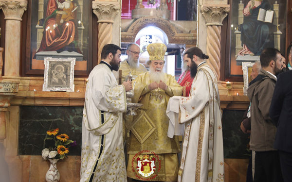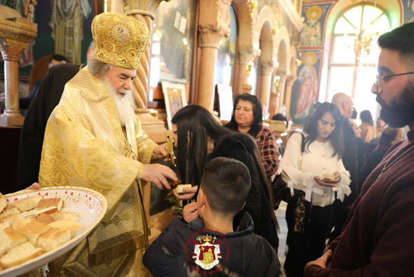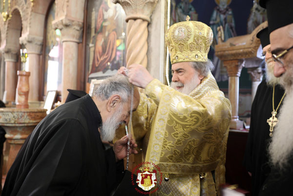 This feast was celebrated in the beautiful and grand church of the village of the Shepherds / Beit Saḥur, with its iconostasis carved into the rock, through the Divine Liturgy, presided over by His Beatitude our Father and Patriarch of Jerusalem, Theophilos III. Concelebrating with Him were their Eminences the Archbishops, Aristarchos of Constantina, Methodios of Tabor, and Aristovoulos of Madaba, along with the Hieromonks of the Holy Sepulchre, led by Elder Kamarasis Archimandrite Nektarios, the Hegumen of the Shepherds, Archimandrite Ignatios, and the Priests of the Church, Hanna Rasmawi, Fr Issa Mousleh, and Fr Savvas Kher, as well as the Hierodeacons Simeon and Eulogios. The choir of the parish chanted, and the ceremony was graced by the presence of the Honorable Consul General of Greece in Jerusalem, Mr Dimitrios Angelosopoulos, the Mayor of the City, Mr Said Khoury, and the former Mayor and current Minister of Tourism, Mr Haiek, with the active participation of the members of the Community.