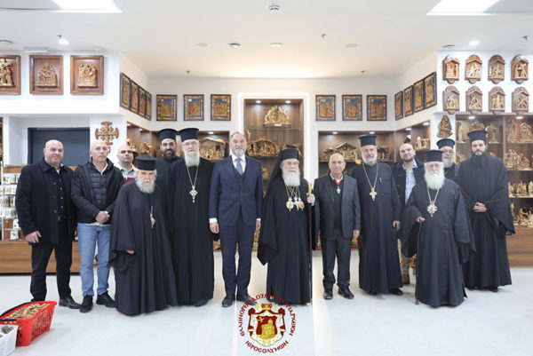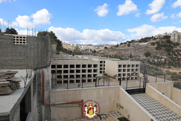 Finally, His Beatitude visited and inspected the new Church of the Cemetery being built by the Community in the land of the Patriarchate, in the estate of the Tower of Saint Sabbas. He then blessed the new shop of pilgrimage items belonging to the Roman Orthodox and faithful friend of the Patriarchate, Mr Athanasius Abu Aeta.