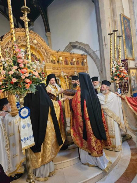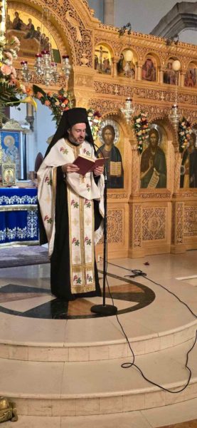 After the Divine Liturgy, recalling the completion of fifty years since the tragic invasion of the island of Cyprus, His Eminence presided over the memorial service for the deceased, offered the prayer of commemoration, and led the ceremonial planting of an olive tree, a generous gift from the Rizokarpasso Association in the church grounds as a lasting memorial to the fallen.