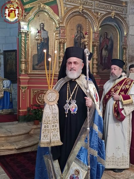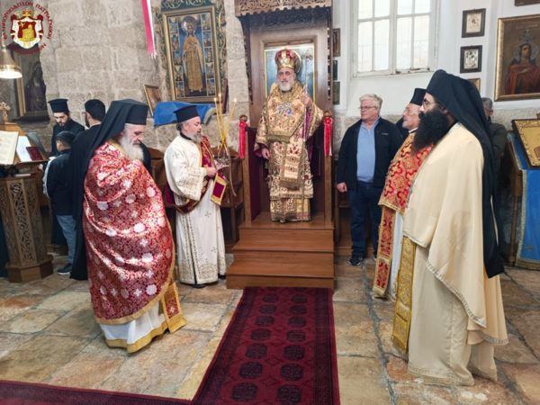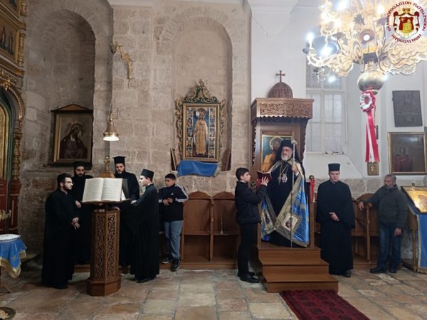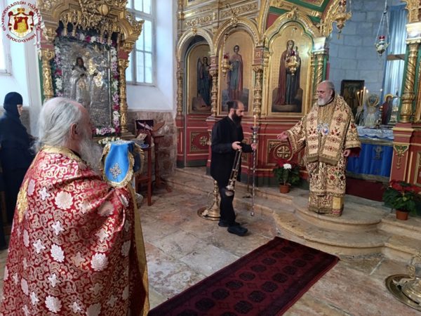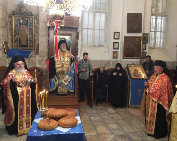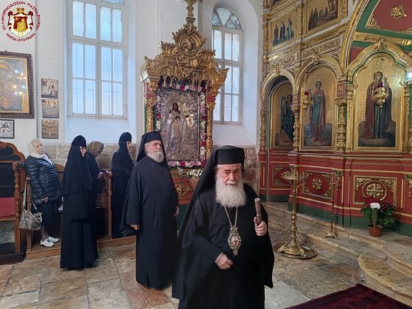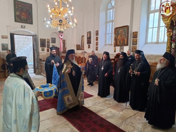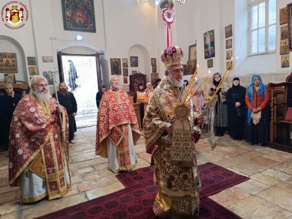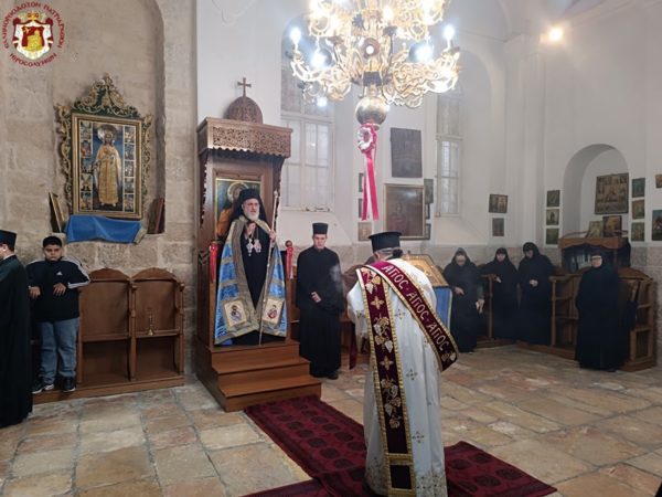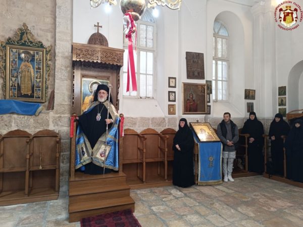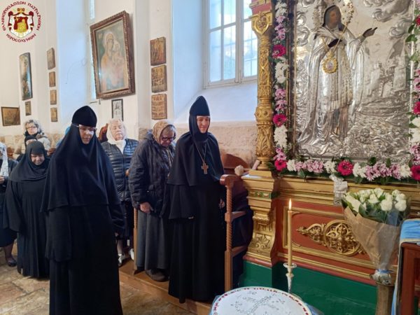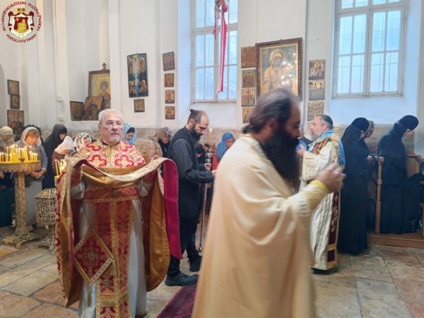 The Vespers in the evening and the Divine Liturgy on the morning of the feast were presided over by His Eminence the Metropolitan Joachim of Helenoupolis, with concelebrants the Archimandrites Philoumenos, Claudios and Christodoulos, the Priest Nektarios and the Archdeacon Mark. The chanting was delivered by Hierodeacon Simeon and the students of the Patriarchal School of Zion, as the service was attended by monks, nuns and believers from Jerusalem and other cities.