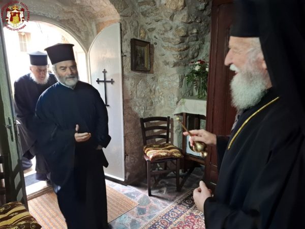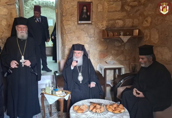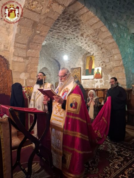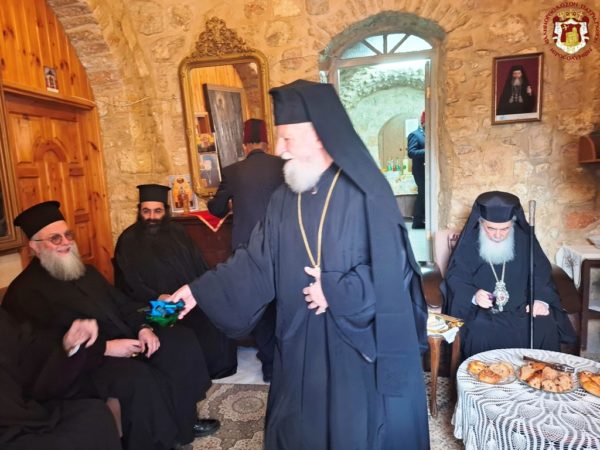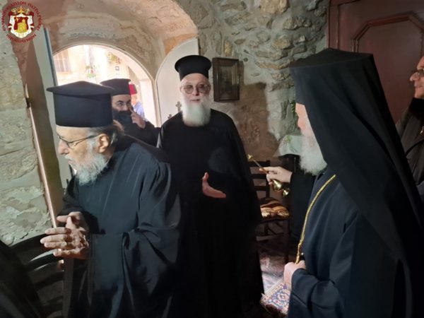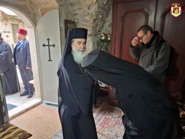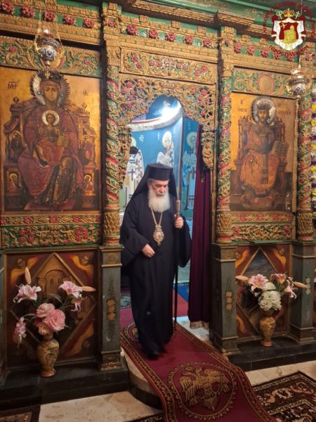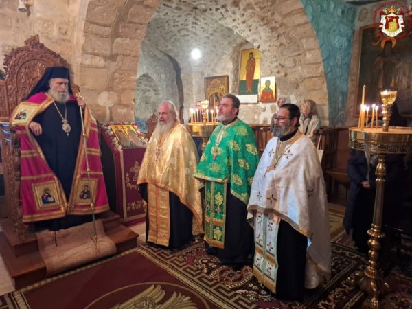 During the Divine Liturgy, His Beatitude, our Father and Patriarch of Jerusalem, Theophilos III, visited the Holy Monastery for veneration, accompanied by Fathers of the Holy Sepulchre.
